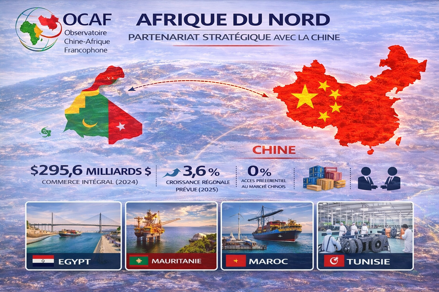 Pour l’OCAF, l’Afrique du Nord confirme donc une évidence majeure : la Chine n’est plus seulement en Afrique comme constructeur ou commerçant, mais comme puissance de positionnement. Et dans cette région plus qu’ailleurs, ce positionnement vise à articuler l’Afrique à la Méditerranée, à l’Europe et au monde arabe. C’est ce qui fait de l’Afrique du Nord non pas une périphérie de la relation Chine–Afrique, mais l’un de ses laboratoires les plus avancés.