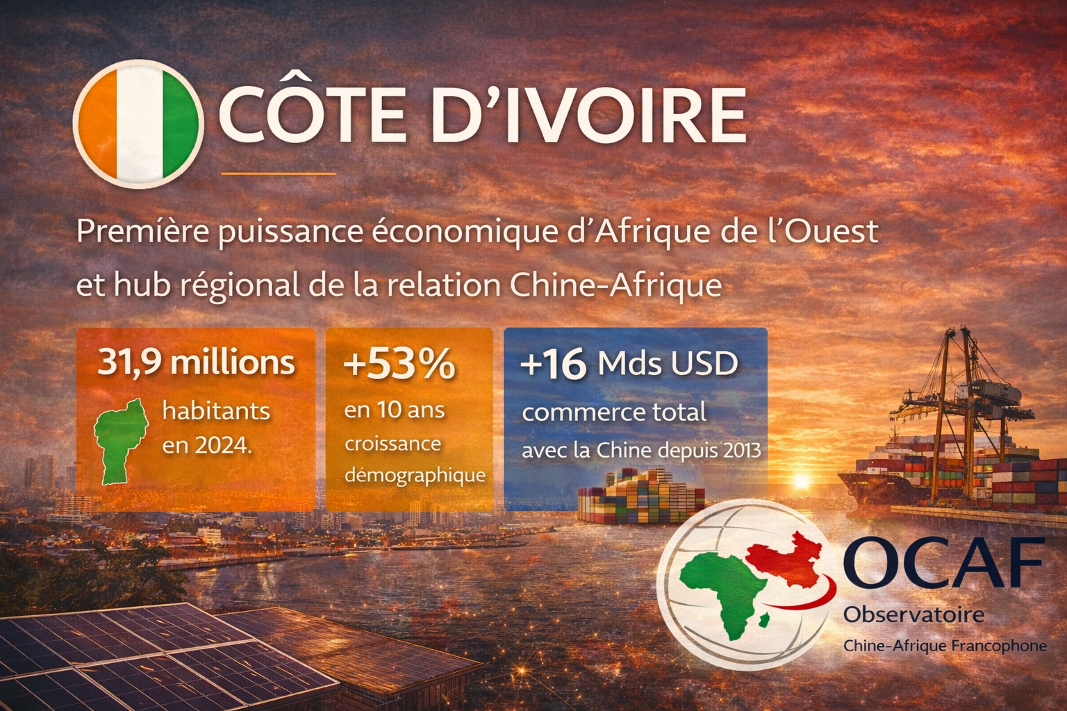 Au fond, la relation Chine–Côte d’Ivoire illustre l’évolution la plus intéressante de la présence chinoise en Afrique de l’Ouest : le passage d’une coopération ponctuelle à un partenariat stratégique multidimensionnel, combinant commerce, énergie, transport, équipements publics, agriculture, formation technique et modernisation administrative. C’est aussi ce qui fait d’Abidjan l’un des points d’ancrage les plus solides de la Chine dans l’espace ouest-africain : la coopération ne s’y réduit pas à l’extraction ou à l’import-export, elle s’insère dans la construction matérielle de l’État, dans la compétitivité urbaine et dans la formation de capacités nouvelles. Autrement dit, la Côte d’Ivoire apparaît aujourd’hui comme l’un des laboratoires les plus avancés de la relation sino-ouest-africaine.