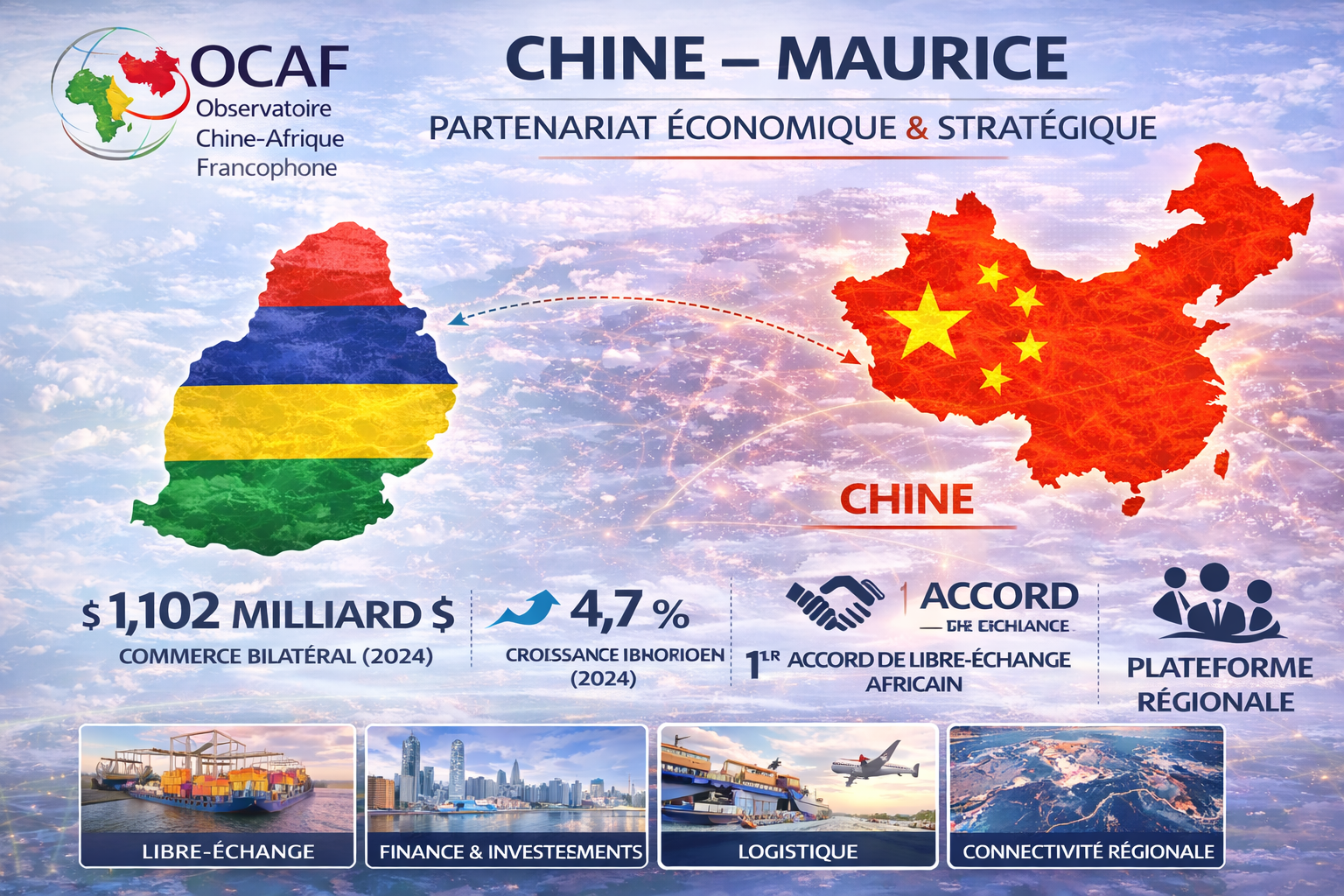 Pour l’OCAF, l’intérêt analytique du dossier Chine–Maurice tient précisément à cette différence de nature. Dans plusieurs pays africains, la question décisive est : la Chine finance-t-elle trop d’infrastructures au prix d’une dette excessive ? À Maurice, la question est plutôt : comment un petit État de services utilise-t-il la Chine pour consolider sa centralité commerciale et financière ? Cela change tout. Le problème principal n’est pas ici la dépendance extractive, mais le risque de rester un débouché d’importations chinoises sans parvenir à transformer suffisamment l’accès préférentiel au marché chinois en moteur d’exportation mauricienne. Les chiffres de 2024 le montrent clairement : 1,083 milliard de dollars d’exportations chinoises vers Maurice contre 19 millions seulement d’importations chinoises depuis Maurice. Cette asymétrie pose une question stratégique sévère : Maurice saura-t-elle convertir l’accord commercial en véritable montée de ses exportations, ou restera-t-elle surtout un marché de biens chinois ?